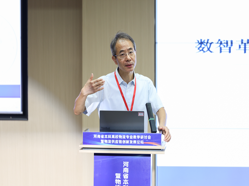 河南省物流学会会长、河南省高校物流专业教学指导委员会主任、郑州大学管理学院副院长李玉民教授在研讨会上致辞。他指出,当前河南省本科高校物流专业发展面临严峻形势,物流专业亟需通过重塑与升级寻找新的发展路径,其核心目标是培养具备数据分析、智能决策和跨领域协同能力的复合型人才,特别要注重提升学生的人工智能素养,以适应行业智能化转型需求。作为物流管理国家一流本科专业负责人,他表示,本次研讨会重点聚焦本科教育改革,旨在通过教师间的深度交流探索专业转型方向。针对社会对物流专业存在的认知偏差,他以无人机、无人仓等实际应用为例,强调现代物流的科技属性,并指出物流作为“永恒专业”具有持久的生命力与发展潜力。